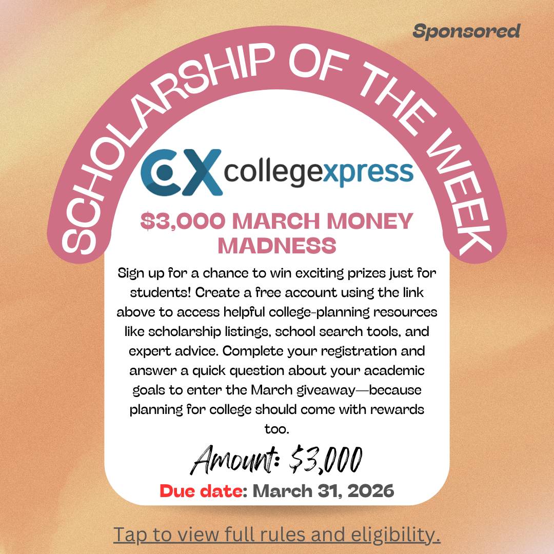 Scholarships Near Me March 4, 2026 Your weekly rundown of State & Local Scholarships to Apply For! Source: Scholarships Near Me Database GEORGIA Georgia Future Champions Scholarship Description: This scholarship is open to any high school seniors or college students who are residents of the Atlanta Metro area and will be attending a two or four-year college, university, graduate school, or law school in the United States. Amount: $5,000 Deadline: May 31, 2026 Apply Now CALIFORNIA...