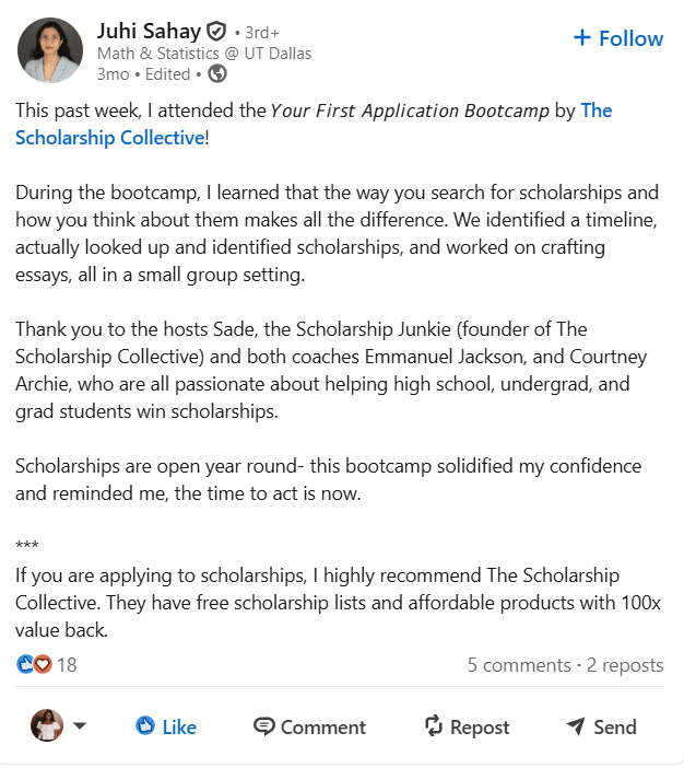 Join the 100,000+ students receiving winning content on all things scholarships from an 11x scholarship winner