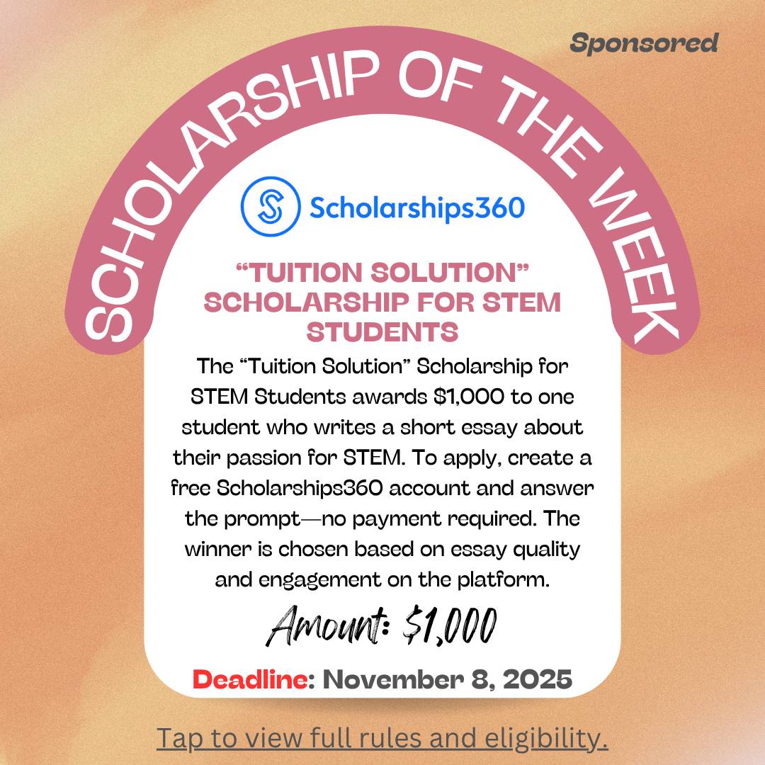 November 9, 2025 The Scholarship Collective POWERED BY Scholarship of the Week 5 REGULAR TICKETS LEFT! Your First Application Bootcamp for Beginners THIS WEEK! Sign Up Now 🏫 Grad School Money Weekly (Nov. 4) Read Now → 📍 Scholarships Near Me (November 5) Read Now → 📋 Scholarships Near Me Plus Get Access for $5 → The Scholarship Roundup The Scholarship Roundup is where you can find different categories of scholarships due soon each week (categories change every week) Easy Scholarships: $1,000...